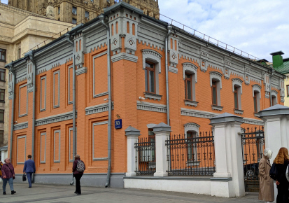 Воздвиженка, 16. Особняк Арсения Морозова (арх. В.А.Мазырин),построен в 1895—1899 г.г. Здание, сочетающее элементы модерна и эклектики, представляет собой образец яркой и экзотической стилизации в неомавританском духе