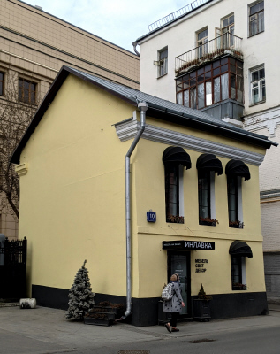 Арбат, 22/2 стр.1. Одноэтажное здание торгового предназначения построено в 1813—1815 г.г. Неоднократно перестраивалось и реконструировалось во второй половине XIX — начале XX в.в. Небольшая правая пристройка сделана в 1908 г.В советское время здесь был магазин ''Охотник'' и кондитерская- булочная