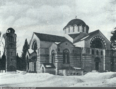 В 1913 г. храм Знамения Богородицы был перестроен в византийском стиле по проекту архитектора С.Л.Соловьева. У церкви были погребены последние владельцы усадьбы В.И. и Н.Г.Солдатенковы.