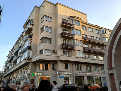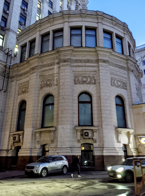 Садовая-Спасская ул., 18. Здание относится к той модификации предреволюционной неоклассики, которая стала предтечей сталинского классицизма. Восьмой этаж надстроен в 1930-х г.г. Впоследствии – общежитие Центросоюза.