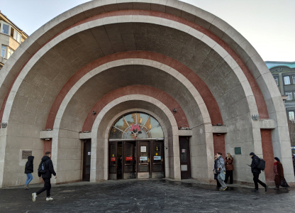 Южный наземный вестибюль станции метро «Красные ворота». Сооружён в 1935 г. Архитектор Н.А.Ладовский. Объект культурного наследия регионального значения (фото 10.03.26)