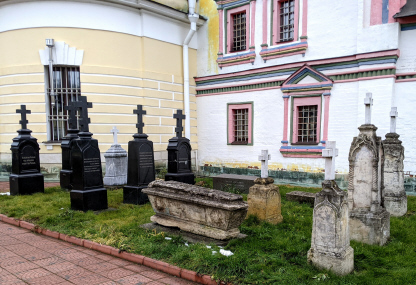 г.Чехов, ул.Пушкина, 7. Анна-Зачатьевская церковь. Фамильный некрополь Пушкиных. В нем покоятся потомки Александра Сергеевича: его старший сын А.А.Пушкин, внуки Г.А. и С.А.Пушкины, правнучка поэта по женской линии С.П.Воронцова-Вельяминова