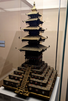 Модель пагоды. Непал, 20 в. Медный сплав, металл, кораллы, бирюза
