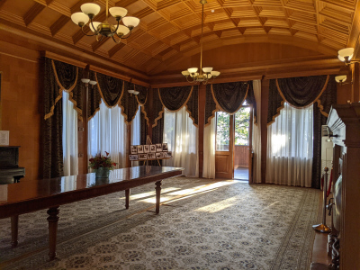 На даче был расположен бассейн, который наполняли морской водой. Как и на всех других дачах, имелся кинозал и бильярд.
