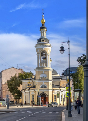 Солянка, 5/2. Храм Рождества Пресвятой Богородицы на Кулишках, «что на Стрелке». Церковь была известна с 1547 г. Существующее здание в стиле зрелого классицизма построено по проекту брата В.И.Баженова — Дмитрия Баженова в 1803-1804 гг. Храм находится в пользовании аланской (осетинской) диаспоры Москвы (фото 02.10.25)