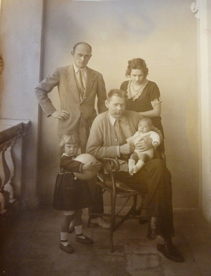 С мужем Максимом Пешковым, свекром А.М.Горьким и дочерьми Марфой и Дарьей, 1928 г.