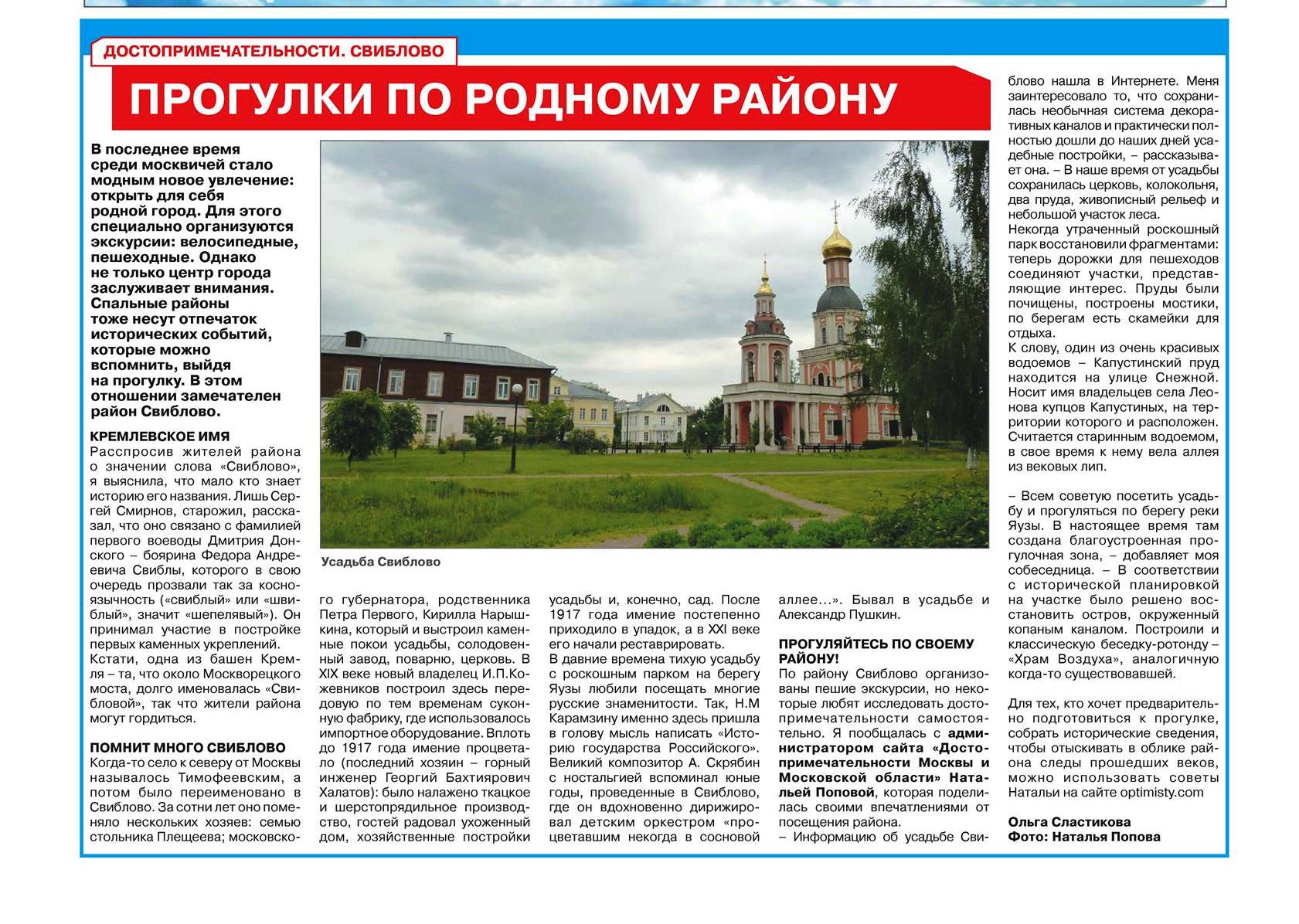 вышла статья о достопримечательностях района Свиблово, в которой были использованы материалы нашего сайта: