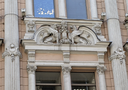 Мясницкая ул., 8/2 стр.1. Бывший Торговый дом М.С.Кузнецова. Внешний декор (фото 18.03.24)