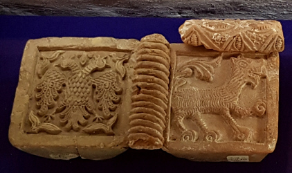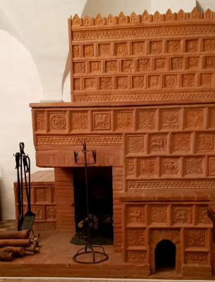Красные изразцы для облицовки печи в Казенной палате, начало XVII в.
