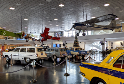 На выставке собрано более 100 единиц техники: от винтажных велосипедов XVII века до культовых автомобилей и самолётов XX века.