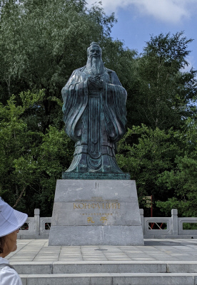 На выходе из сада камней стоит памятник Конфуцию.
