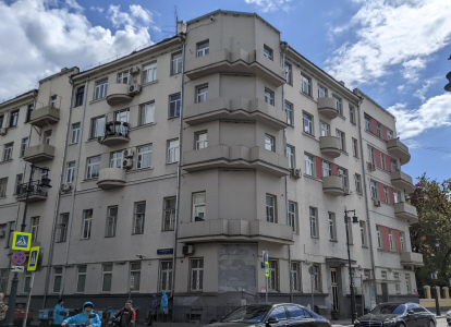 Пречистенка, 17/9. В 1931-1932 годах жилой дом, двухэтажный с полуподвалом, включающий в себя объем флигеля 1780-х г.г. был надстроен тремя этажами по проекту архитектора Д.Маркова. Выявленный объект культурного наследия (в составе городской усадьбы Бибиковых – Д.В. Давыдова, XVIII–XIX вв.). (фото 14.05.25)