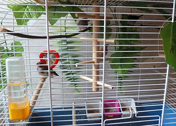 Размещать клетки с амадинами лучше вдоль стены у окна с таким расчетом, чтобы лучи солнца падали на клетки два-три часа в день. Свет и солнечные лучи имеют большое значение для общего состояния птиц, особенно в период линьки. В теплое время года клетку с амадинами следует выставлять на некоторое время под солнечные лучи, но не более чем на 40 мин. Клетки и комнатные вольеры лучше располагать на расстоянии 40—50 см от пола и выше. Устанавливать их можно на специальный стол-подставку.