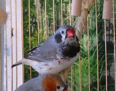 Зорро (чернолицый чернощекий черногрудый серый самец щепный на оранжевогрудых и палевых д.р. 13.12.12)