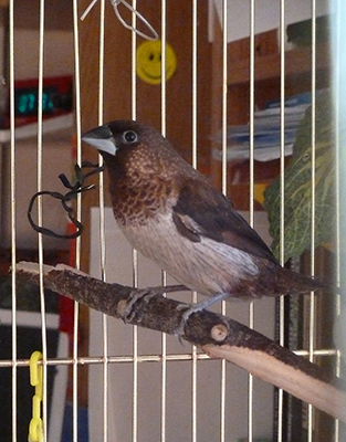 Дэйл (самец пестрый бело-шоколадный сэдлбэк масковый, д.р. 04.10.12)