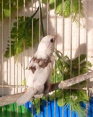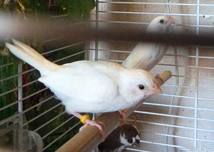 Алиса (самка пестрая бело-палевая сэдлбэк, д.р. март 2012 г.)