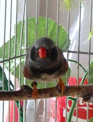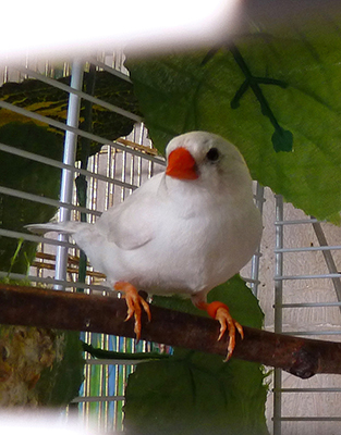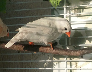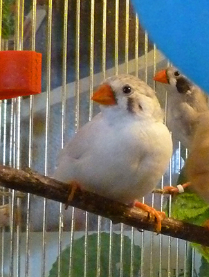 Лили (чернощекая самка серый лайтбэк щепная на черногрудых) - белое кольцо на левой лапке