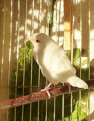 Жизель (белая самка) - сиреневое кольцо на левой лапке