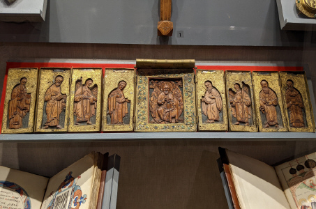 Складень, XVI в. Дерево, медь, резьба, скань, цветная эмаль