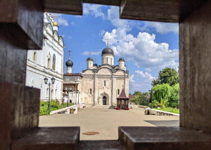 • Собор Введения во Храм Пресвятой Богородицы построен в 1362 г. при основателе преподобном Варлааме Серпуховском. Нынешний Введенский собор (после входа прямо) сооружён в правление Бориса Годунова.