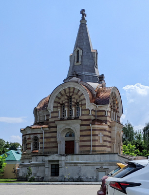 Храм Всех Святых (Высоцкий мужской монастырь). Построен в 1896 г. по проекту Р.И.Клейна на средства Н.Н.Коншина в качестве родовой усыпальницы серпуховских фабрикантов Коншиных, делавших в XVIII–XIX в.в. значительные вклады в монастырь