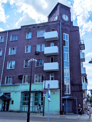 пл.Ленина, 12/20. «Дом с часами». Построен в стиле конструктивизма 1928 г.