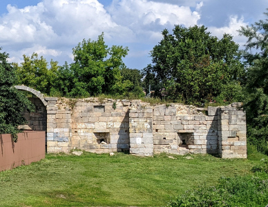 ул.Аристова, 13. Слева руины Северо-восточная башня Распятского монастыря