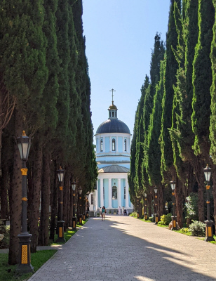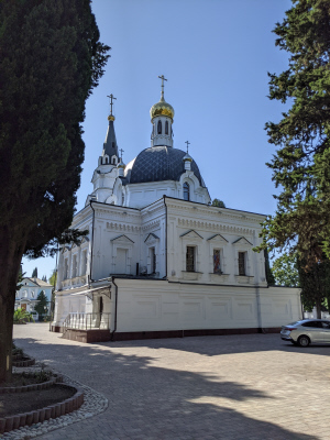 ул.Москвина, 12. Собор Святого Архистратига Архангела Михаила и Крестильный храм Иверской иконы Божией Матери. Главный православный храм города Сочи. Сооружён в память окончания Кавказской войны (1864 г.). Начало сооружения собора связывают с прямым указанием Великого князя наместника Кавказа Михаила Николаевича