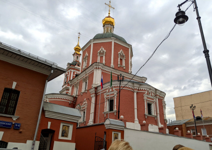 Петропавловский пер., 4-6 стр.8. Храм святых апостолов Петра и Павла у Яузских ворот. Храм на этом месте известен с 1623 г. С 1629 г. храм был каменным. Церковь никогда не закрывалась и сохранила свои колокола. Объект культурного наследия федерального значения. При храме представительство Сербской Православной Церкви (фото 02.10.25)