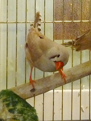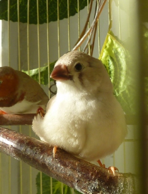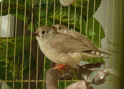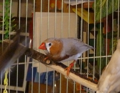 чернощекая палевая самка щепная на черногрудых и оранжевогрудых - красное кольцо на левой лапке