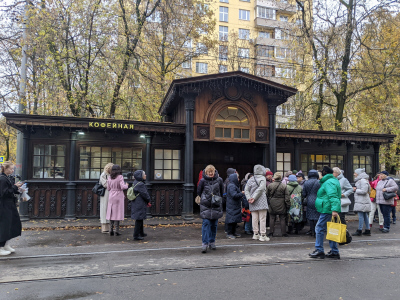 На маршруте № 27 некоторое время работал кондуктором писатель К.Паустовский. В 1926 г. павильон реконструирован Е.Шервинским с использованием чугунных деталей.