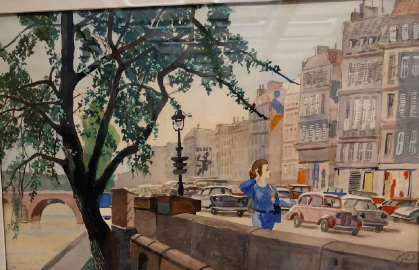 Берлин. Наводят связь. 1945 г. Бумага, акварель, белила. Курская картинная галлерея